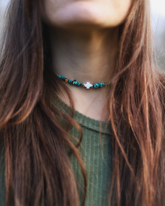 Cairn Cross Choker - Turquoise, Carnelian & Mother of Pearl
